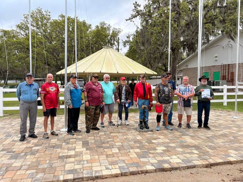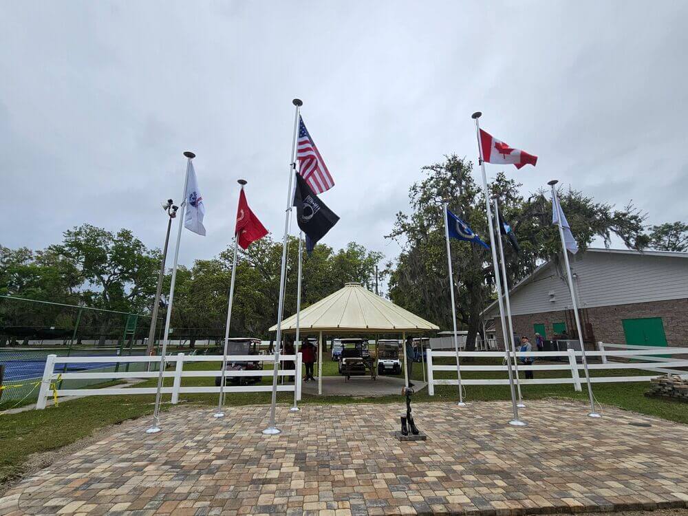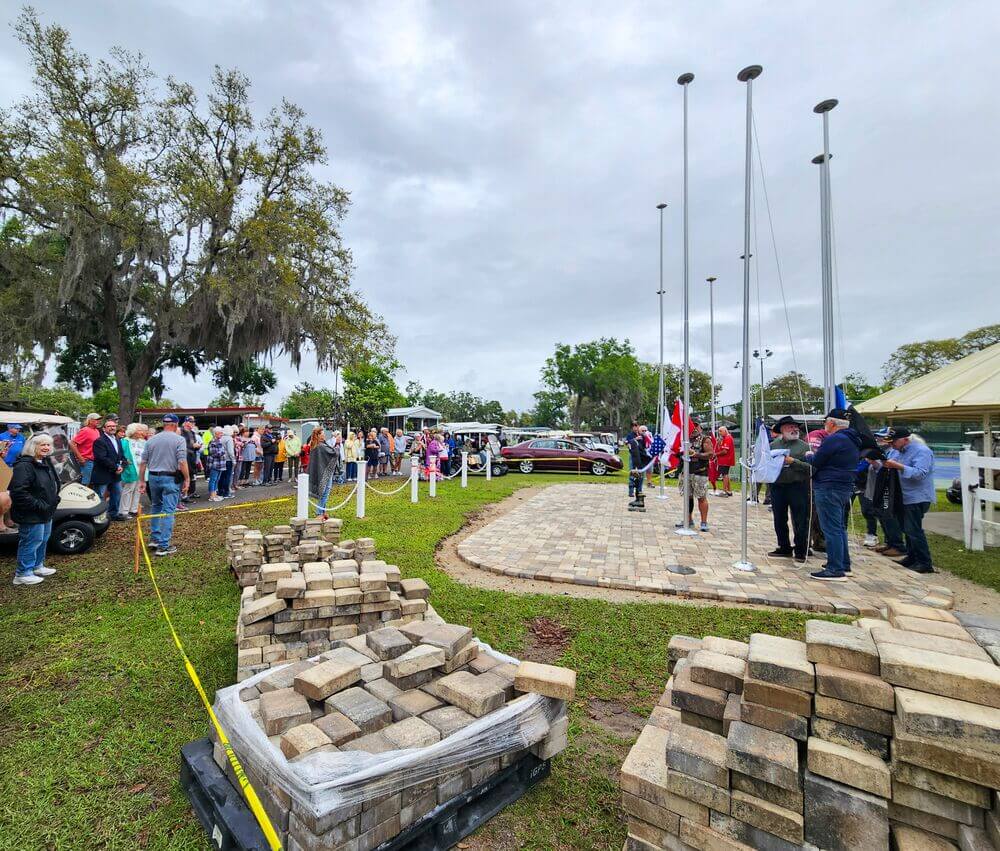 A memorial walkway within the manufactured home community honors service members. More than 100 residents have purchased engraved bricks honoring those who served. The most unique brick honors a Jamaica Bay resident’s relative who served in the Civil War. Money raised from the bricks helps pay for future Veterans Association programs.